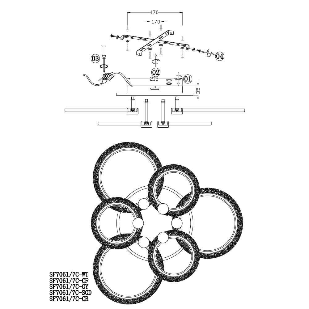 Характеристики Люстра потолочная светодиодная Seven Fires SF7061/7C-WT-RGB с пультом д/у