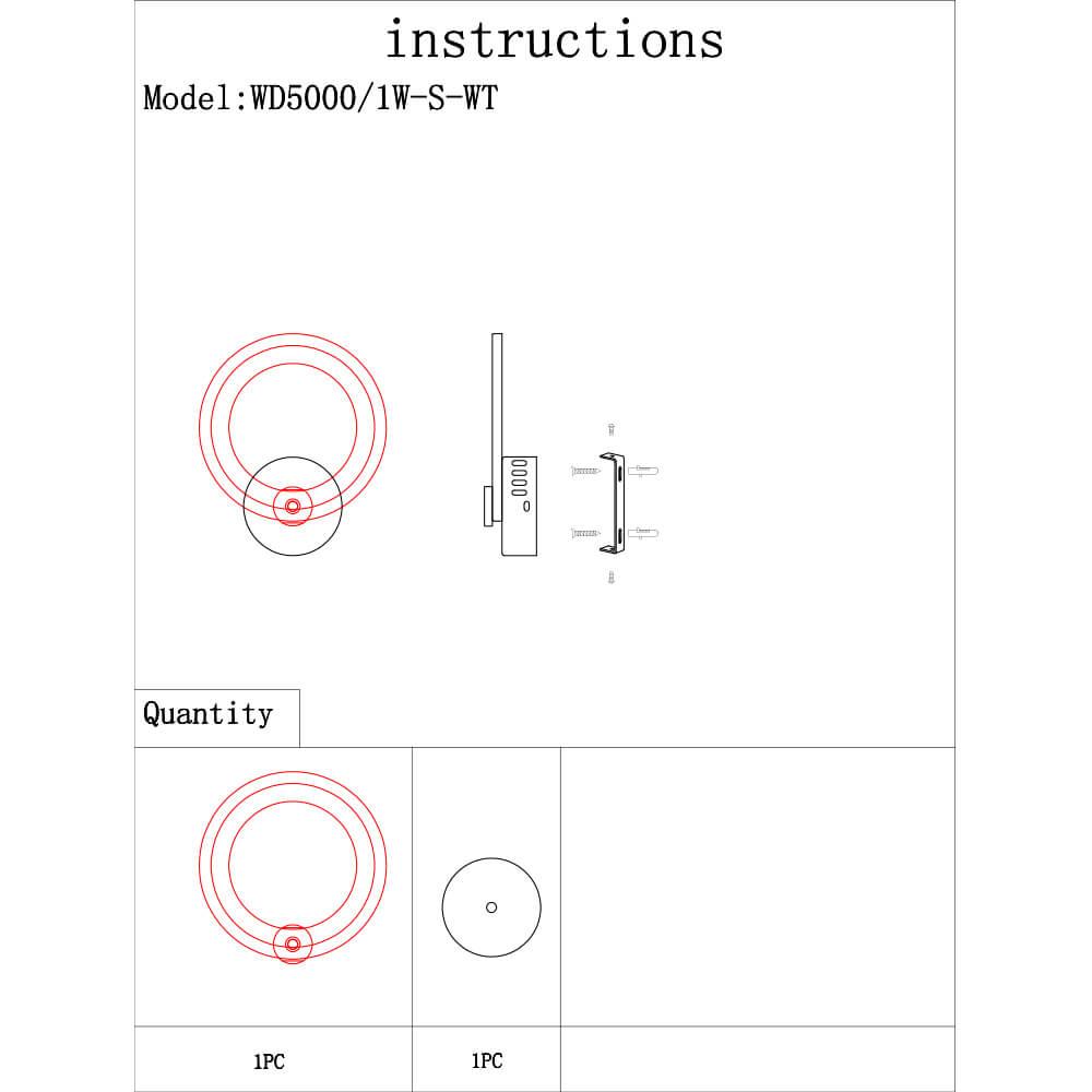 Характеристики Светильник настенный Seven Fires WD5000/1W-S-WT