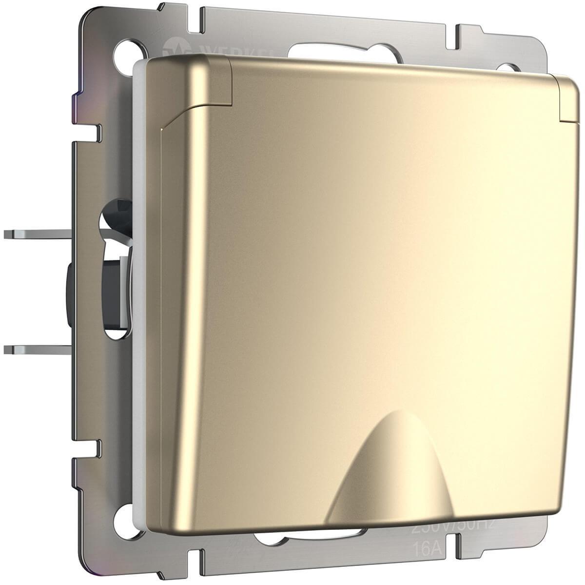 Розетка Werkel влагозащищенная с заземлением с защитой крышкой и шторками шампань W1171211 4690389157400